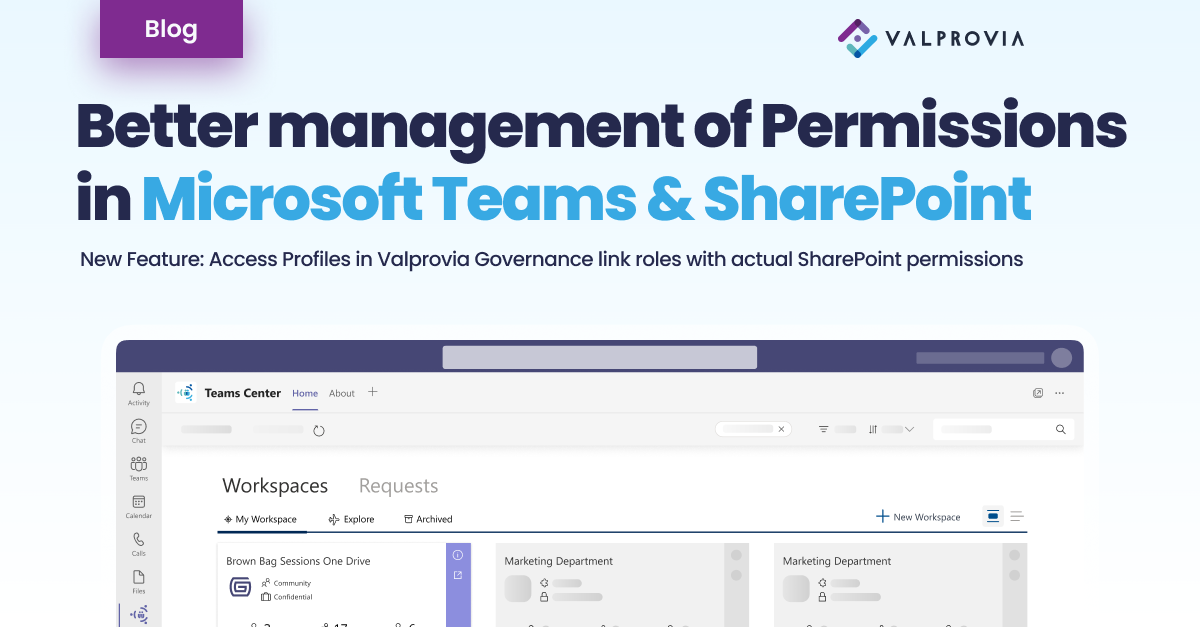 Valprovia bietet eine präventive Governance-Plattform für Microsoft Teams und SharePoint, die IT-Abteilungen wieder volle Kontrolle über ihre Microsoft-365-Umgebung gibt. Die Plattform verhindert Wildwuchs, Oversharing und chaotische Strukturen durch eine sich selbst durchsetzende Sicherheits- und Governance-Schicht. Zusätzlich synchronisiert Valprovia Metadaten, Berechtigungen und Ordnerstrukturen zwischen Dynamics 365 und SharePoint und sorgt so für ein sicheres, strukturiertes und integriertes Dokumentenmanagement.